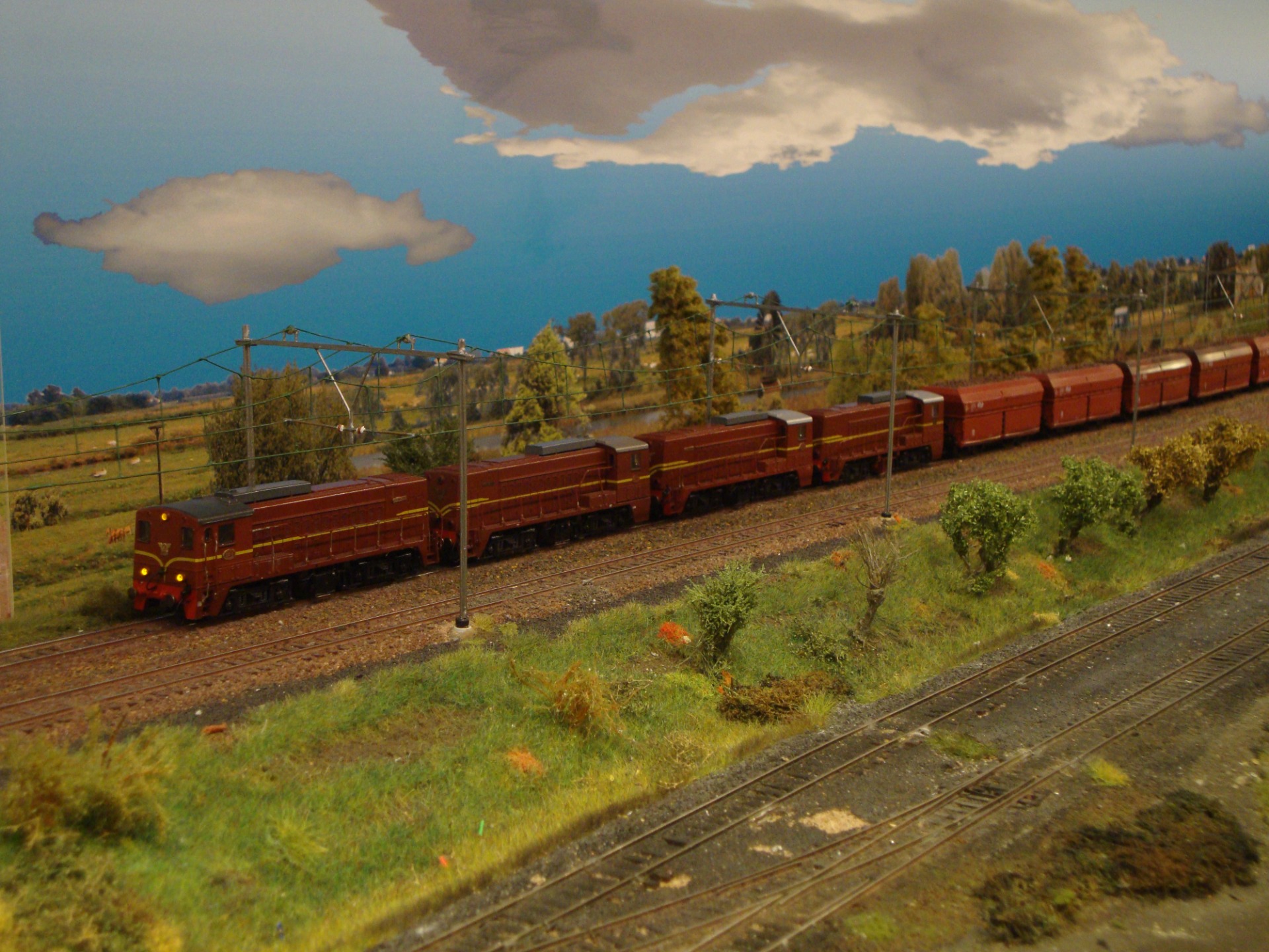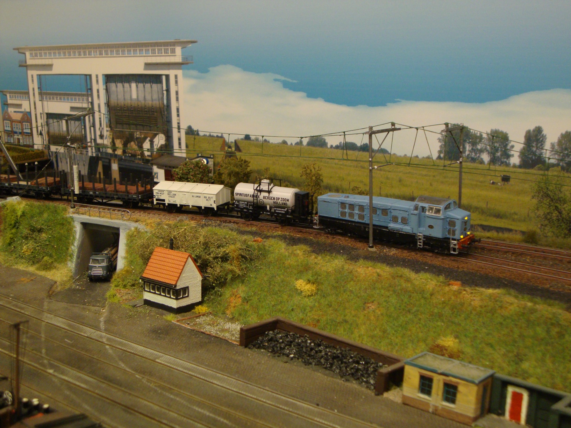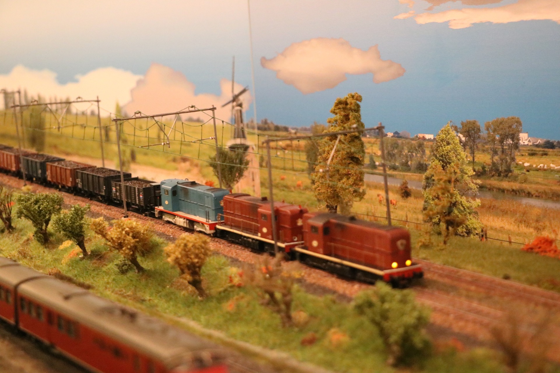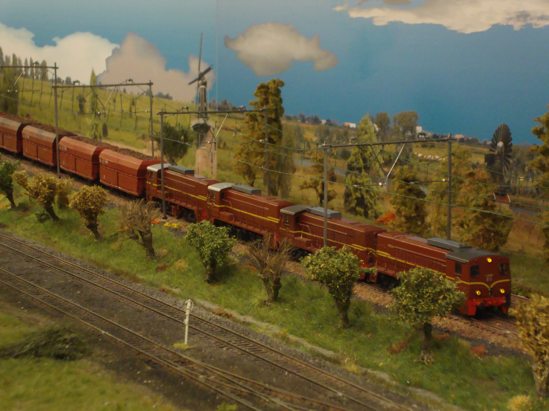 Hoge ogen gooide de diesel-elektrische tractie in de wens de stoomtractie in de goederendienst te verdrijven. Tussen 1954 en 1956 kwamen van Alsthom 129 Bo-Bo-locs van de serie NS 2400 in dienst, in 1957 nog gevolgd door een exemplaar met verhoogde cabine; de 2530. De eerste locs van de serie 2400 verschenen in een fraaie blauwe kleur, maar het grootste deel van de serie kwam in de inmiddels voor goederenmaterieel ingevoerde roodbruine kleur in dienst. De 2530 was aanvankelijk gestoken in een lila-kleur, wat hem de bijnaam Bisschop opleverde. In 1963 werd ook deze loc roodbruin. De serie 2400 was van een type dat Alsthom als standaard kon leveren en was geen NS-ontwerp. Uitgangspunt voor de NS was hierbij de mogelijkheid van snelle levering. Ongeveer tegelijkertijd werd er aan de HBL in Noordoost Frankrijk een serie geleverd die vrijwel identiek was aan de NS-serie 2400. Deze HBL BB01-BB16 werden daar ingezet voor het toen nog zeer omvangrijke kolentransport in dat gebied. In de jaren '90 eindigden daar ook diverse NS 2400'en, die na hun buitendienststelling bij de NS aan Frankrijk waren verkocht voor de aanleg van TGV-lijnen. De 2400'en konden multiple geschakeld met elkaar rijden, waardoor zij geschikt waren om met twee, drie of vier locs zware treinen te kunnen trekken. In Bilthaven is een serie van drie locomotieven voor een kolentrein te zien. Bij de NS kwam dit niet zo vaak voor, omdat daar na de afschaffing van de stoomtractie in de regel 2200'en werden ingezet, maar vanuit depot Eindhoven is een kolentrein met 2400'en zeker iets dat tot de mogelijkheden heeft behoord. Daarnaast heeft de aparte 2530 (in het roodbruin) hier zijn plaats.