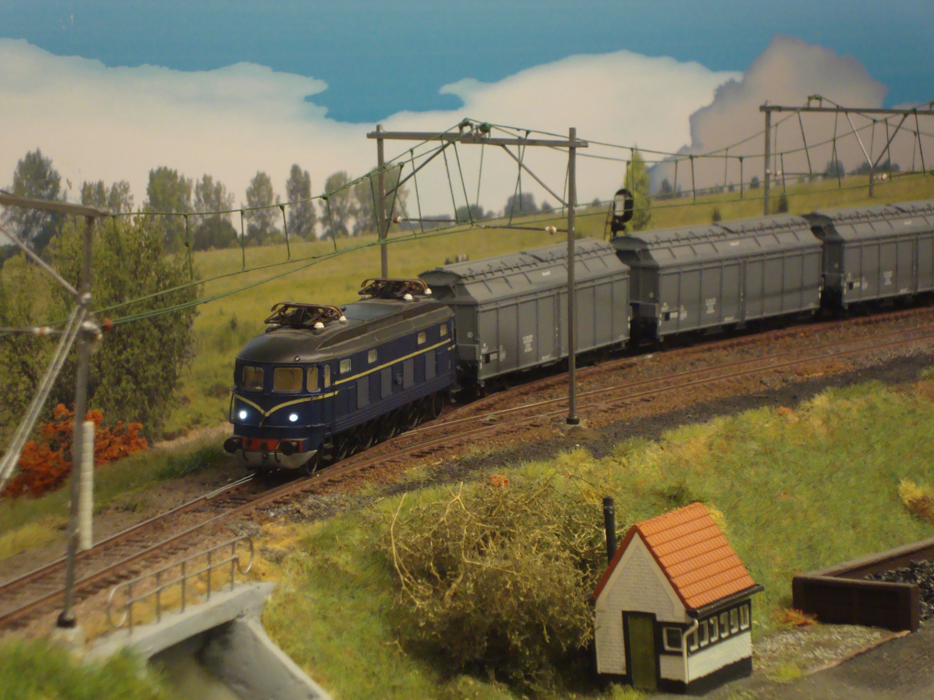 In de jaren 1948/1949 kwamen de eerste elektrische locomotieven in dienst die echt aan de NS behoorden. Ze werden voor een deel in Zwitserland gebouwd (vier) en in Nederland bij Werkspoor (zes). Deze NS-serie 1000 was opvallend onder meer door de grote spaakwielen. Ze waren bedoeld voor een max. snelheid van 160 km/uur, maar de machines kregen met diverse problemen te kampen. Vanaf 1955 werd de maximum snelheid dan ook teruggebracht tot 100 km/uur. Omdat ze bijzonder sterk waren konden ze zich nog goed verdienstelijk maken in de goederendienst. Aanvankelijk waren ze groen, maar vanaf 1954 werden ze Berlijns blauw. Zowel in het groen als in het blauw is te Bilthaven een 1000 te zien. De blauwe voor een trein die deze serie in werkelijkheid lange tijd reed; de 4711 of 4712, de VAM-trein tussen Den Haag en Wijster.