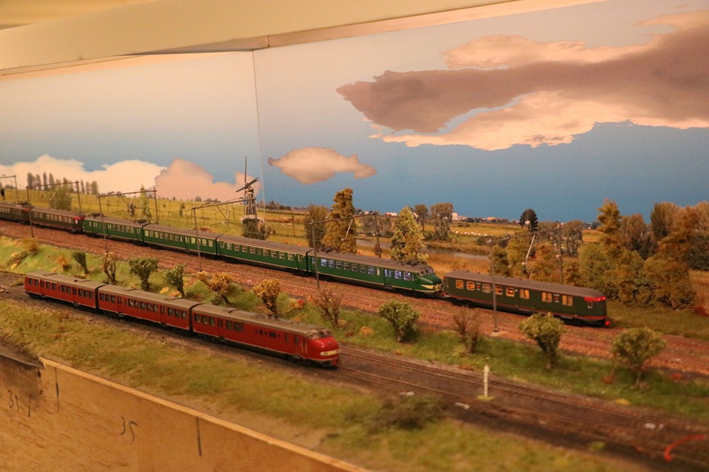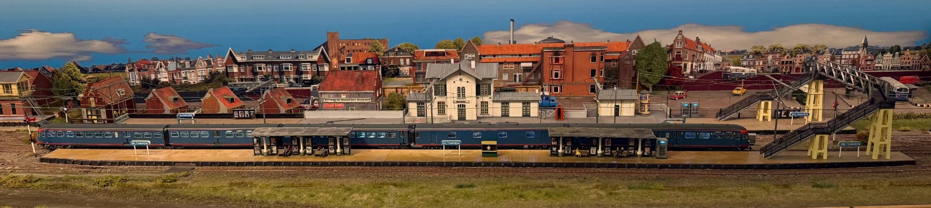 De treinstellen Mat ´35 t/m Mat ´54 konden met elkaar gekoppeld rijden en daarbij uiteraard ook de stroomlijnpostrijtuigen meenemen. De maximale lengte van dergelijke combinaties omvatte 14 bakken, inclusief stroomlijnpostrijtuigen. Modelbaan Bilthaven kent een combinatie van treinstellen Mat ´54, Mat ´46 en stroomlijnpostrijtuigen. Ook deze combinatie telt 14 bakken. Vooraan twee treinstellen Mat ´54, waarvan het eerste treinstel reeds voorzien is van de bekende snor op de neus, terwijl het tweede stel nog de bloedneusbeschildering heeft. Verderop twee tweewagenstellen Mat ´46.