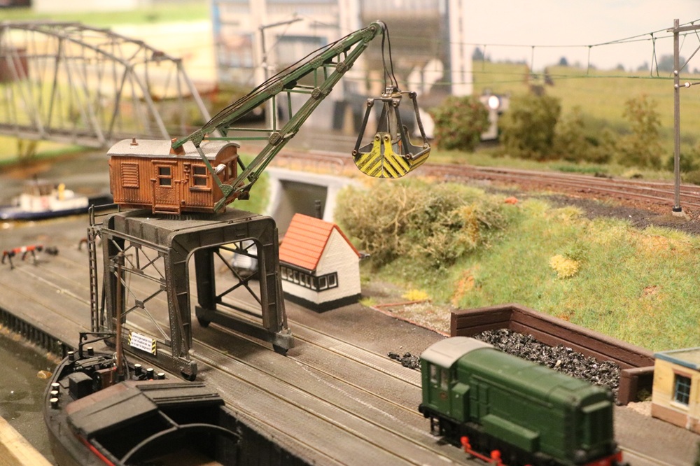 Deel van de kleine haven van Bilthaven met onder meer een kraan(op rails), weeghuisje en kolenopslag. Op de voorgrond een rangeerloc serie NS 500/600.